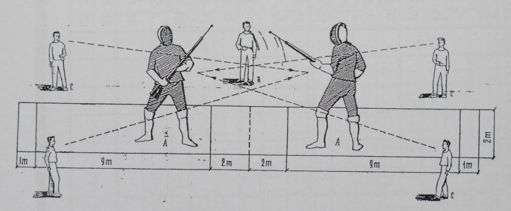 In 1952 bayonet fencing was instituted as a defence discipline in the then Czechoslovakia, not only in the military, but also in civilian fencing clubs. The then State committee for physical education and sport introduced instructor courses of this sport, for coaches as well as judges and referees. The meaning of the discipline for the civil defence of the nation was constantly underlined. A year later, the bayonet was placed with the classical sporting weapons (the épée, foil and sabre) as a fourth fencing weapon.