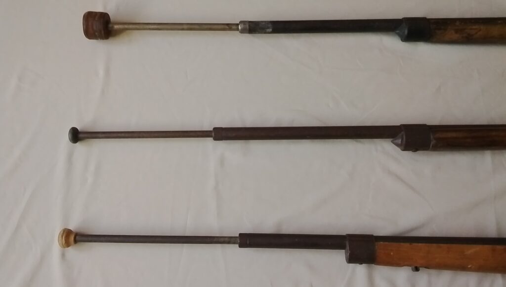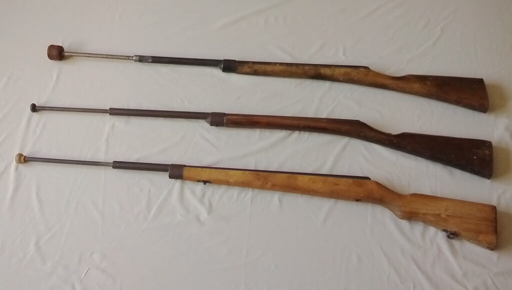 The technique for bayonet fencing was based on military training practice, and did not differ greatly from the techniques of the nineteenth century. The gear used was also similar, differing only in the fact that fencers wore more sturdy gloves protecting the whole forearm, on both hands. The target area was the whole body including the head, with the exception of the forearm and the legs from the knees down. Blows with the butt of the weapon were banned as a safety precaution. The weapons used were wooden replicas of rifles with metal barrels, which had spring-loaded bayonets inserted into them. The military as well as the sporting version of the rifle with the spring-loaded bayonet are weapons of original Czechoslovak manufacture.
